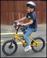 Adrian enjoys his new found freedom on his bike without training wheels