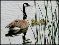 A Canada goose decided to stay and start her new family right here! The baby geese are called gosslings.